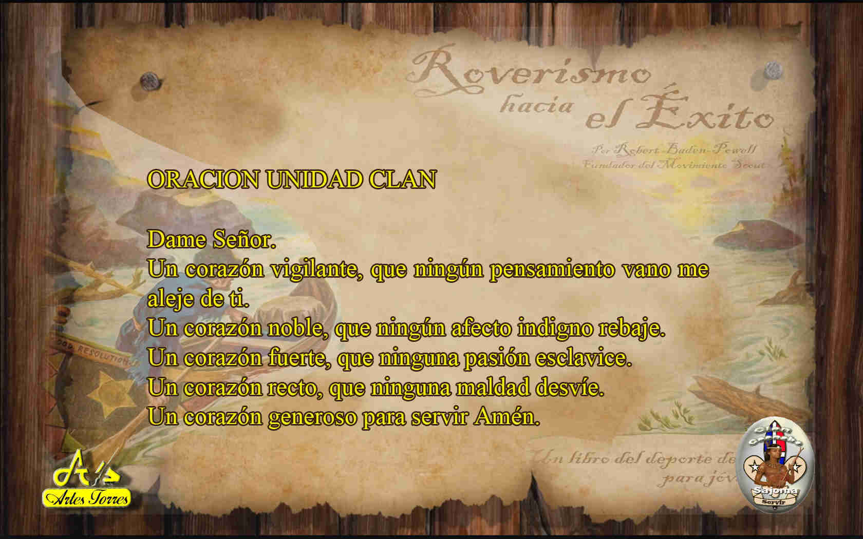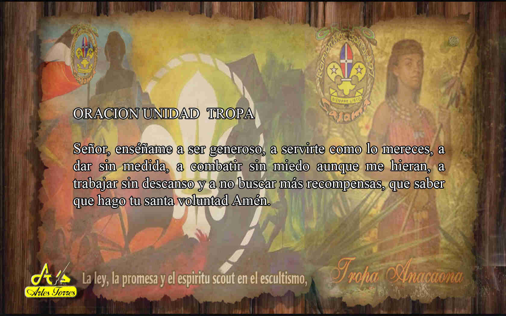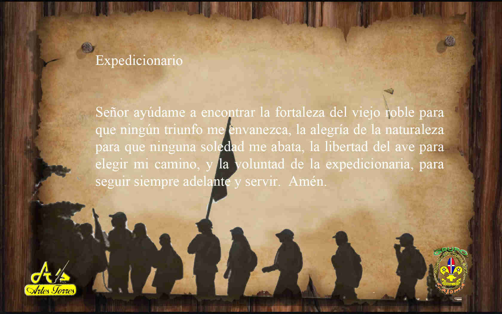 dentro del escultismo pone al Creador delante, por esta razón colocamos aquí las plegaria o suplica directamente a El.