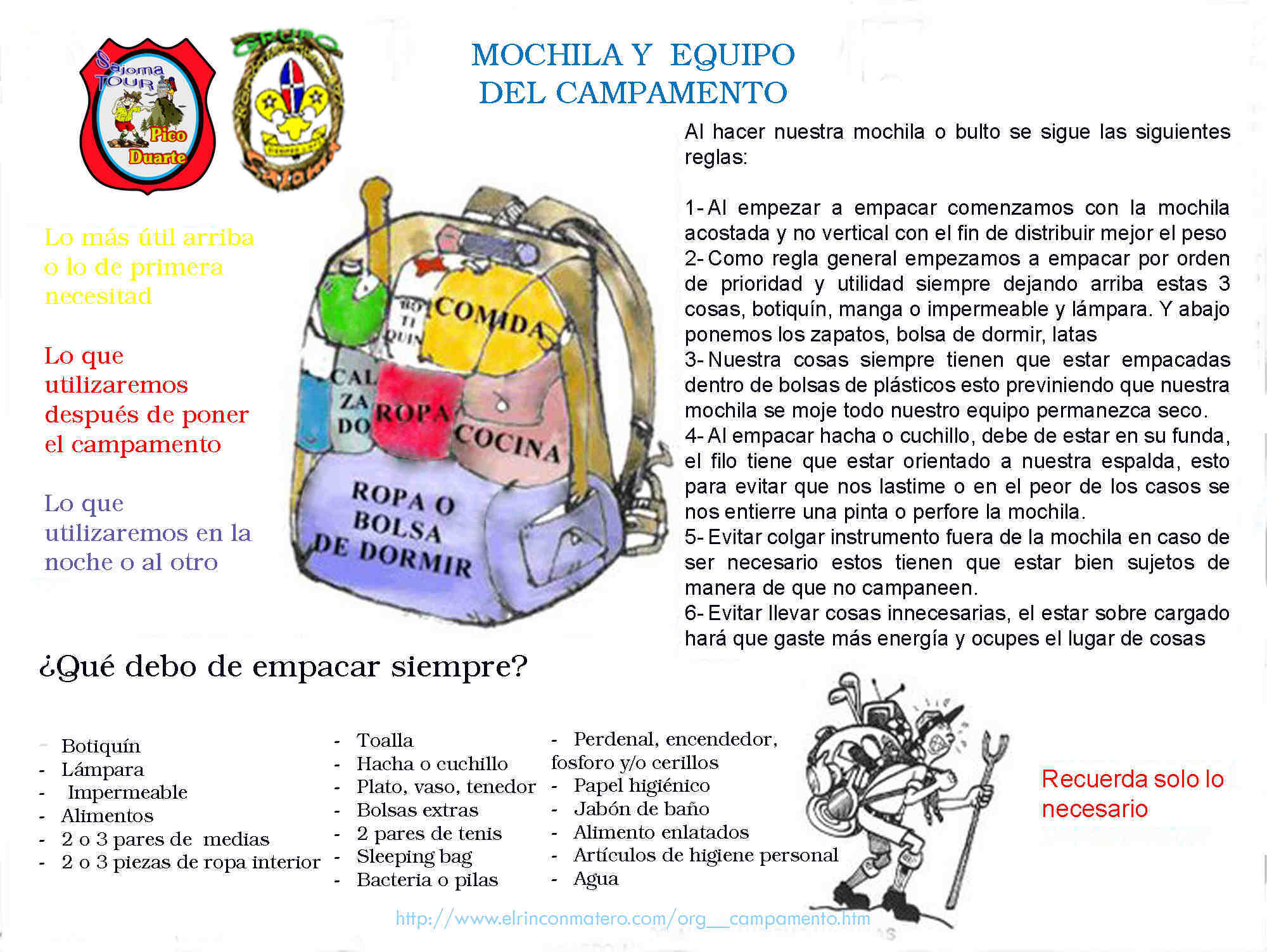 scouts que vestimenta deberán llevar para ir a acampar (normalmente el