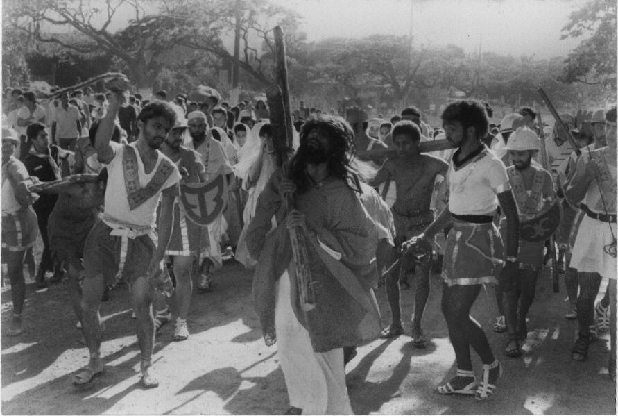 procesión desde la iglesia hacia la tres cruces ( hoy el calvario)